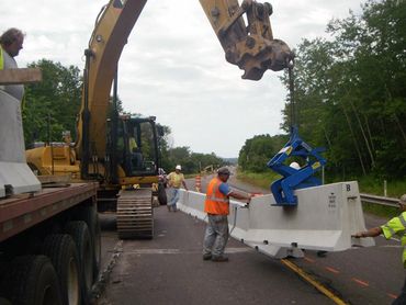U.P. Concrete Pipe Company manufactures temporary concrete median barriers meeting the Michigan DOT standard “Indiana Spec” and NCHRP 350 crashworthy criteria. These barriers are used for safety to separate traffic traveling in opposite directions, traffic traveling in the same direction, and to redirect errant vehicles. These temporary concrete barriers may be used as a median barrier in certain situations, or may be used to protect traffic from a temporary construction hazard such as road or bridge repairs.
