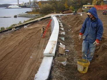 Below are pictures of a wall cap manufactured by U.P. Concrete Pipe Company and placed on an Earth Lock Wall at the Founders Landing project in Marquette, MI.
